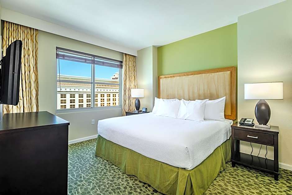 A full kitchen with a dishwasher is featured in this suite. A seating area with a sofa bed and cable TV is available.